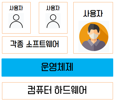 하드웨어 바로 위에 설치되어 사용자 및 다른 모든 소프트웨어와 하드웨어를 연결하는 소프트웨어 계층을 말합니다.