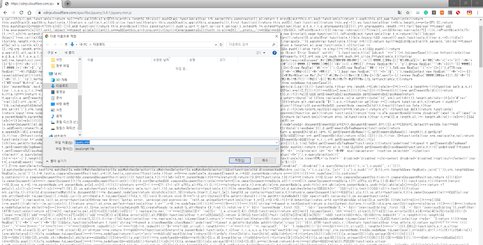 Ctrl + S 를 눌러 jquery.js 로 이름을 바꿔 저장하겠습니다.