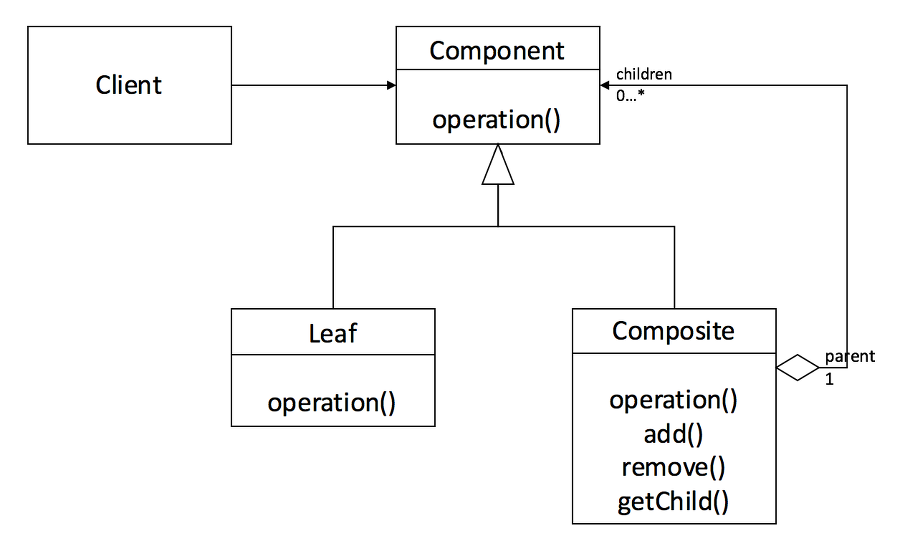 - Component에 선언된 인터페이스를 통하여 부분과 전체를 동일하게 처리