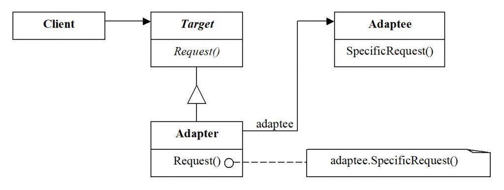 - Adapter : Target 인터페이스에 Adaptee의 인터페이스를 맞추는 클래스
