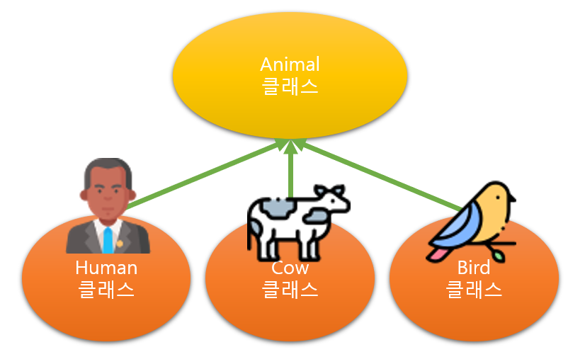 위와 같은 관계입니다. 즉, 일반 클래스를 구체화 하는 상황에서 상속을 사용합니다.
